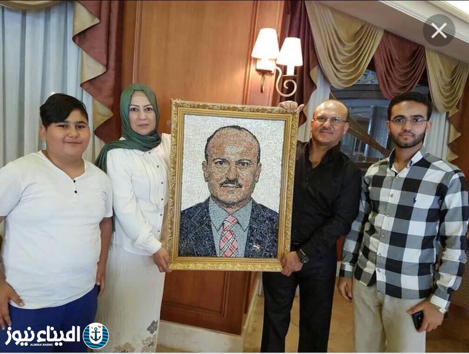 تداول ناشطون على مواقع التواصل الاجتماعي صورة للعميد المشهور بالدنجوان يحيى محمد عبد الله صالح وهو يتسلم صورته التي رسمتها فنانة تشكيلة لبنانية .