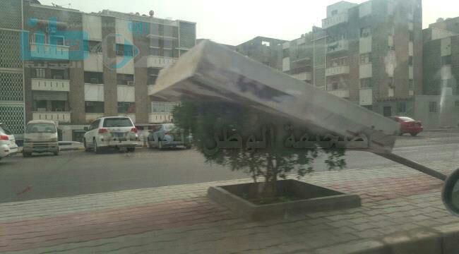 شاهد بالصورة .. موجة رياح شديدة تجتاح مدينة عدن وتسقط عددا من اللوحات الاعلانية