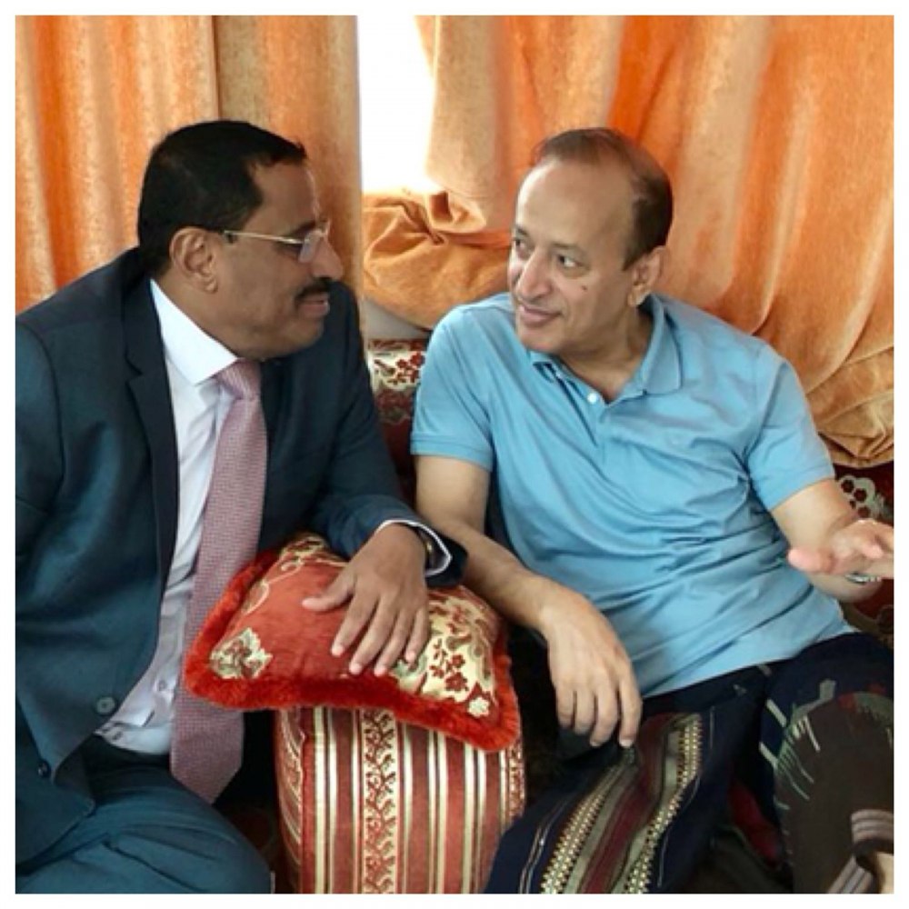 أول صورة واضحة لمحافظ تعز بعد نجاته من محاولة الاغتيال وبجانبه مسئول حكومي كبير