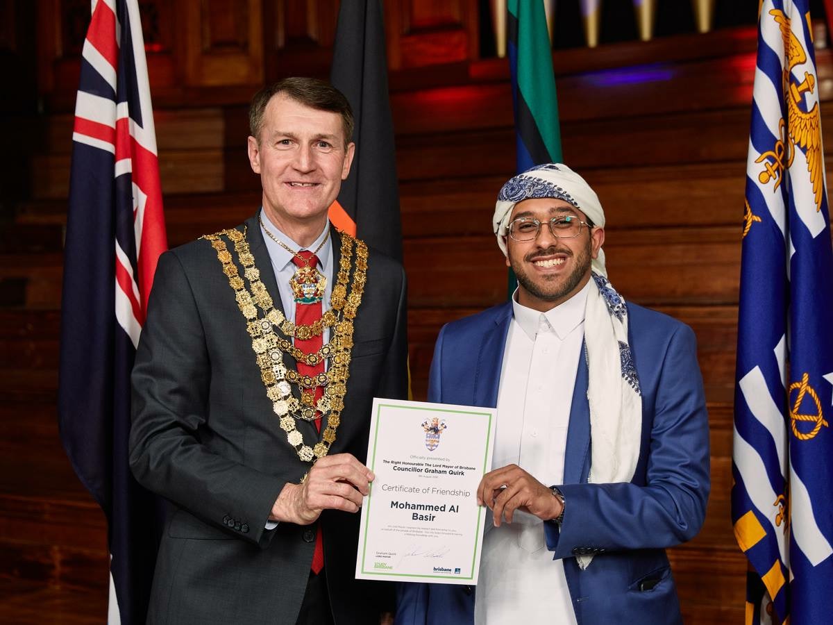 طالب يمني يتفوق في مجال العلوم السياسية في استراليا ويتم تكريمه من عمدة مدينة بريزبن