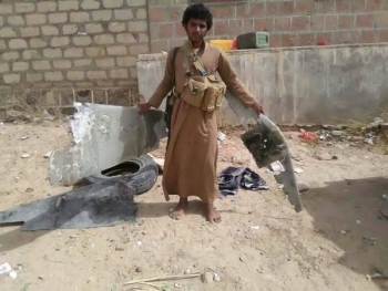ونقل المركز الإعلامي للمنطقة العسكرية الثالثة عن ركن توجيه اللواء 19 مشاة النقيب مطلق جوهر المعروفي، قوله إن أفراد من اللواء 19 أسقطوا طائرة الاستطلاع الحوثية بسلاح رشاش متوسط في قرية الغول بمديرية نعمان، مؤكداً أن الطائرة تناثرت إلى قطع.