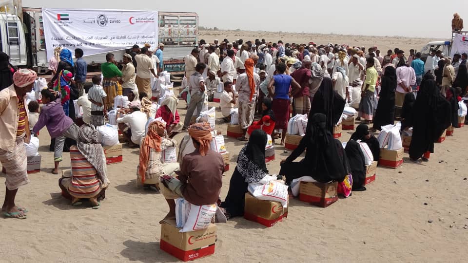 الرئيسية - محافظات وأقاليم - الهلال الأحمر الإماراتي يوزع مساعدات إغاثية لسكان القرى النائية والنازحين بمحافظة الحديدة