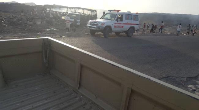 وقالت مصادر، ان حافلة نقل على متنها حجاج في طريقهم الى عدن احترقت في منطقة العرقوب، ما ادى الى اصابة 36 راكبا و7 لازالوا مفقودين .