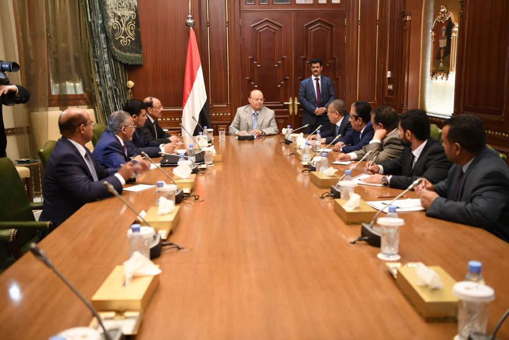 وجه فخامة رئيس الجمهورية عبد ربه منصور هادي ، وجه رئيس الحكومة واعضاء اللجنه وضع التدابير والحلول الناجعه لنتجاوز معاً الوضع الراهن والانتصار في معاركنا ذات الاوجه المتعددة عسكرياً واقتصادياً وانسانياً امام جماعة الكهنوت التي تستثمر معاناة شعبنا ولا تكترث مطلقاً لأوضاعه، وقال فخامة الرئيس يجب عليكم التركيز على محورين مهمين يتمثل الاول في تنمية الإيرادات ، وذلك من خلال إتخاذ كافة الإجراءات في مختلف المجالات تؤدي لتوريد كافة ايرادات الدولة الى البنك المركزي مثل الضرائب والجمارك وغيرها من الإيرادات ، والعمل على تصدير النفط من كل الحقول في مارب وشبوة وحضرموت عبر ميناء النشيمة وميناء الضبة، وكذا البدء بتصدير الغاز عبر بلحاف
