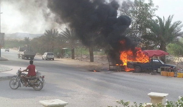 احترقت إحدی سيارات بيع الوقود في السوق السوداء الواقعة على مدخل مدينة شبام التاريخية بحضرموت مساء السبت.