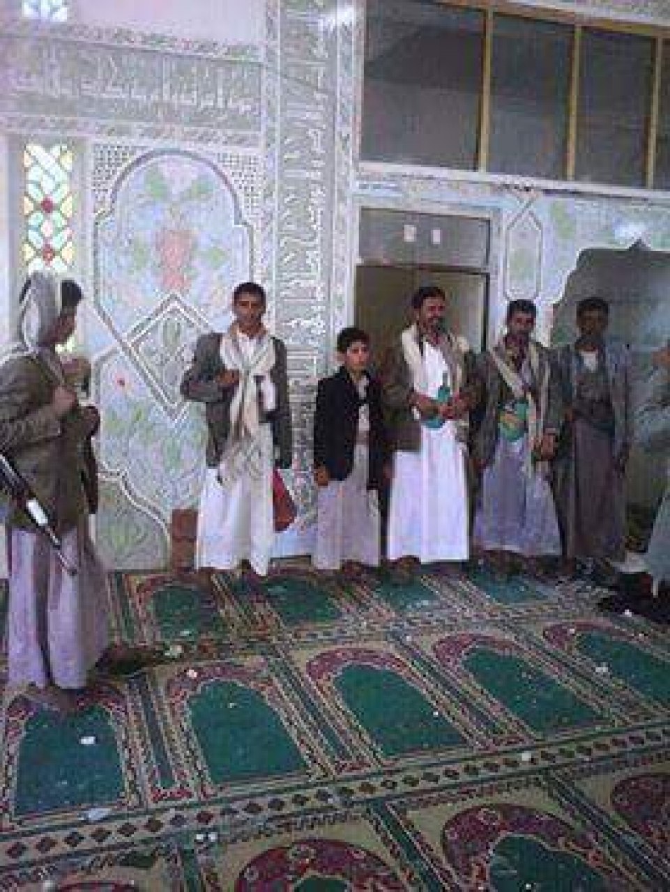شاهد صورة للحوثيين وهم يرتكبون جريمة شنعاء داخل بيوت الله