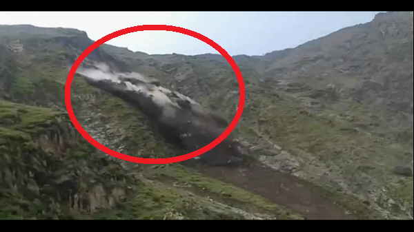 شاهد لحظة انهيار جبل ضخم على قرية يمنية بالكامل .. وعدسة محترف تلتقط اللحظات المرعبة