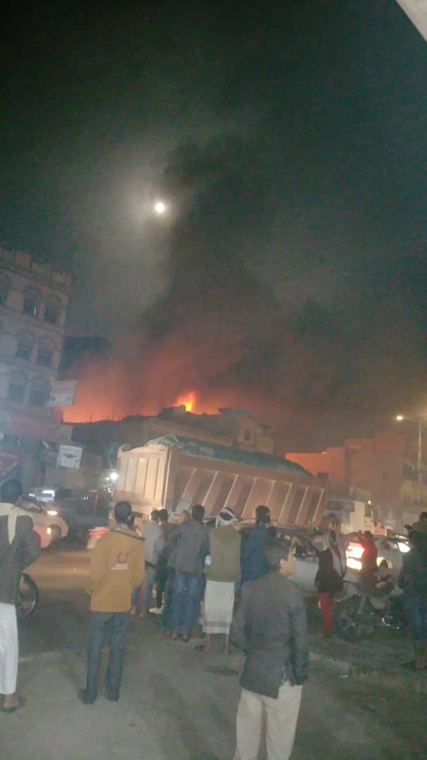 نشب حريق هائل في شارع خولان في العاصمة صنعاء مساء هذه الليله