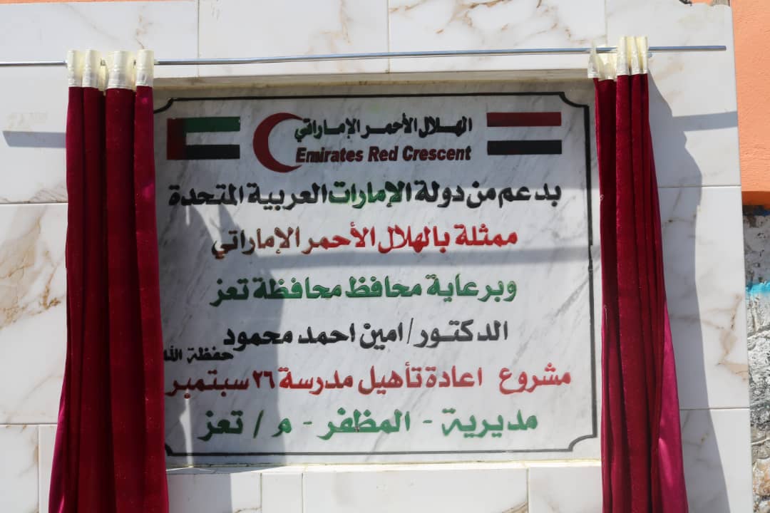 بالتزامن مع احتفال ثورة 26سبتمبر.. الهلال الأحمر الإماراتي يفتتح مدرسة 26سبتمبر في تعز