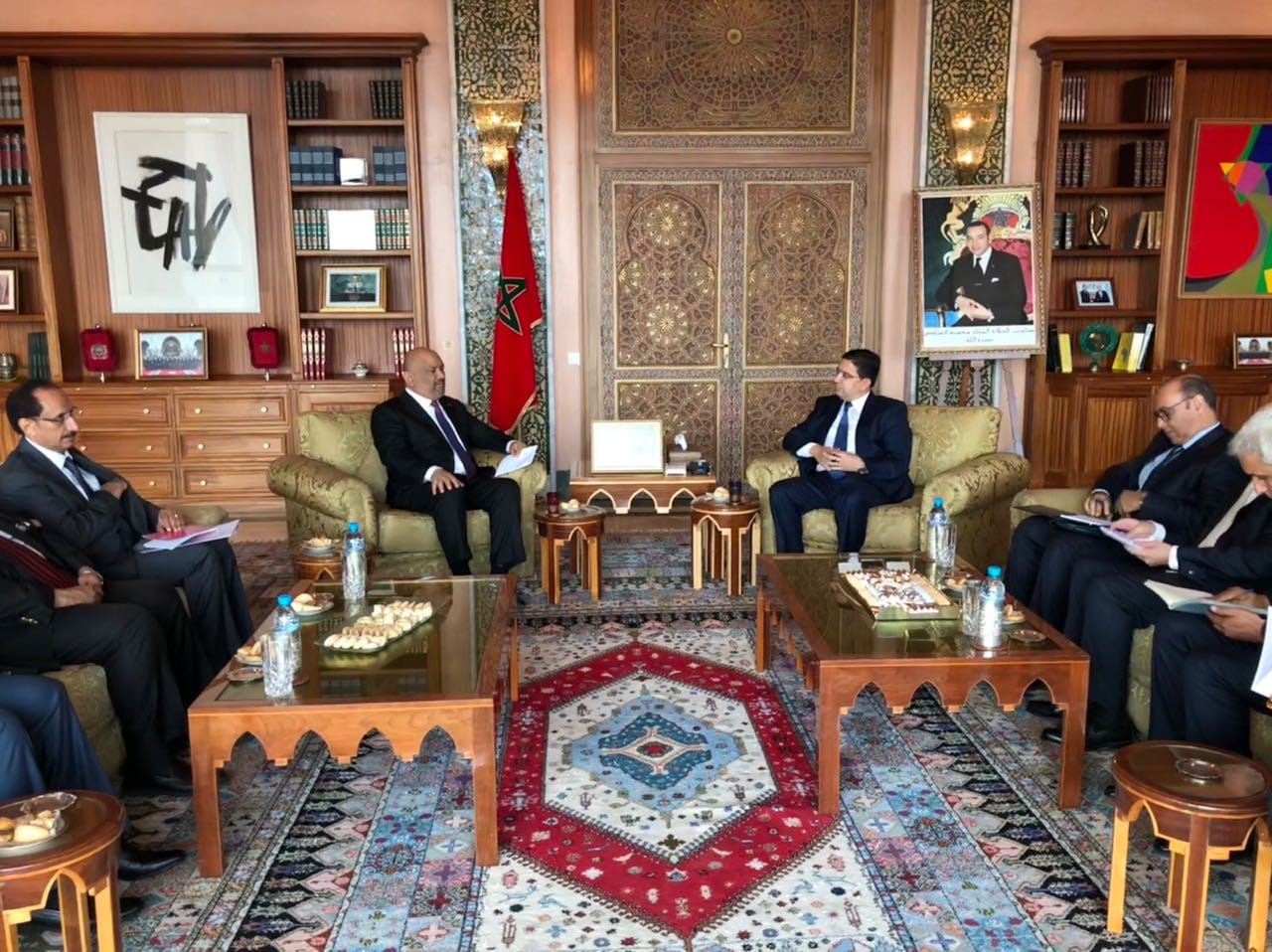ونقل الوزير اليماني تحيات فخامة الرئيس عبدربه منصور هادي رئيس الجمهورية إلى أخيه جلالة الملك محمد السادس ملك المملكة المغربية..مؤكدا على الدور الهام و التاريخي الذي تلعبه المغرب في دعمها لمشروع استعادة الدولة في اليمن وجهود مواجهة سياسة إيران التوسعية في المنطقة.