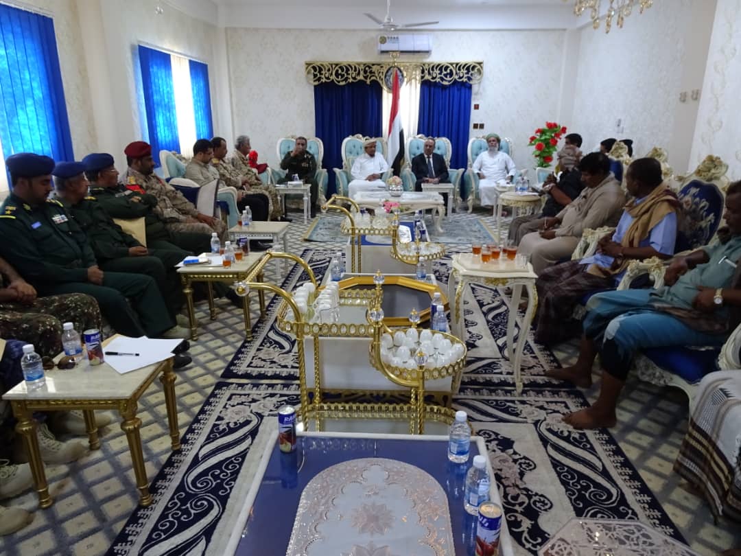 من جانبه، رحب الأمين العام للمجلس المحلي، بنائب رئيس الوزراء وزير الداخلية..مستعرضاً طبيعة الأوضاع بصورة عامة وتكامل العمل بين الوحدات الأمنية والعسكرية بالتعاون والتنسيق مع التحالف العربي..مطالباً بتقديم المزيد من الدعم والامكانيات للقوات العسكرية والأمنية.