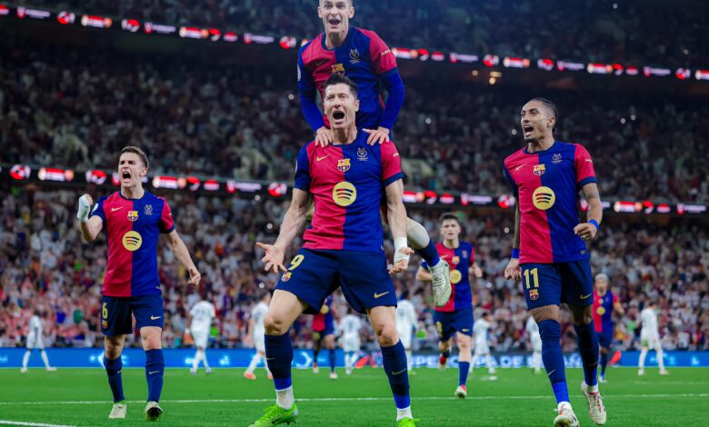 وسجل الهدف الأول لريال مدريد كيليان مبابي في الدقيقة الخامسة من عمر المواجهة قبل أن يعود برشلونة بثلاثية عن طريق لامين يامال، ليفاندوفسكي، ورافينيا وبالدي في الدقائق 22، 36، و39 و45+9 من الوقت بدل الضائع على الترتيب.