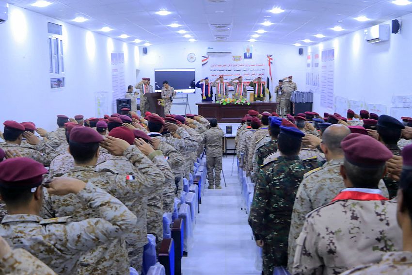 وفي كلمةِ الخريجينَ، شكرَ العميد رشاد الكامل، جهود قيادة وزارة الدفاعِ ورئاسة هيئةِ الأركانِ العامة لما يولونَهُ من اهتمام بالغٍ بتأهيلِ القادةِ وتطويرِ القواتِ المسلحةِ على أسسٍ علميةٍ حديثةٍ..مشيرًا إلى أن الدورةَ قدْ صقلتْ في الخريجينَ مفاهيمَ القيادةِ الحديثةِ، وعززتْ قدراتِهم في التخطيطِ والتنفيذِ وإدارةِ المعركةِ بكفاءةٍ في مختلفِ الظروف..مؤكدًا أن الخريجينَ سيعملونَ على نقلِ ما تلقوهُ إلى مرؤوسيهم، بما يُعززُ الجاهزيةَ القتاليةَ ويحققُ النصرَ في معركةِ استعادةِ مؤسساتِ الدولةِ وإنهاءِ انقلابِ تنظيمِ جماعةِ الحوثي الإرهابيةِ المدعومةِ من إيران.