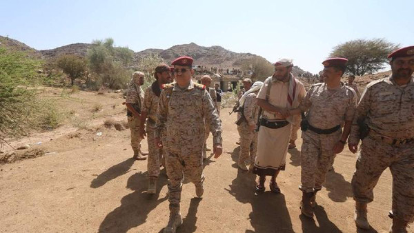 تفقد مستشار القائد الأعلى للقوات المسلحة القائم بأعمال وزير الدفاع الفريق الركن محمد علي المقدشي،اليوم، سير العمليات العسكرية الجارية في منطقة قانية بمحافظة البيضاء، واطلع على الإنتصارات الأخيرة التي احرزها الجيش الوطني مسنوداً بالمقاومة وقوات التحالف العربي الداعمة للشرعية ضد المليشيا الحوثية الإنقلابية.