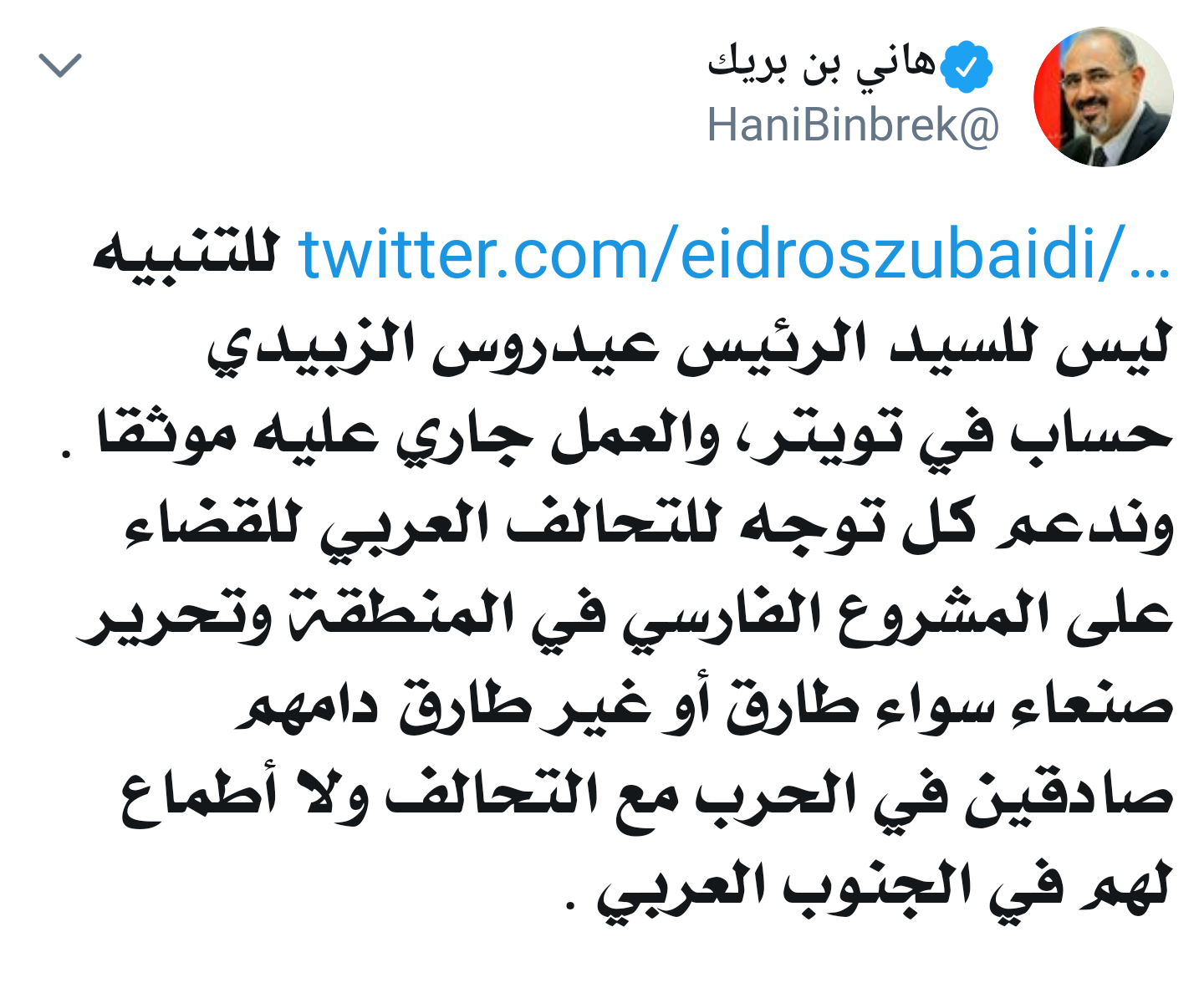 هاني بن بريك يعلن تأييده لـ طارق عفاش وصحفي جنوبي يرد عليه بلفظ خادش للحياء (صورة وتفاصيل)