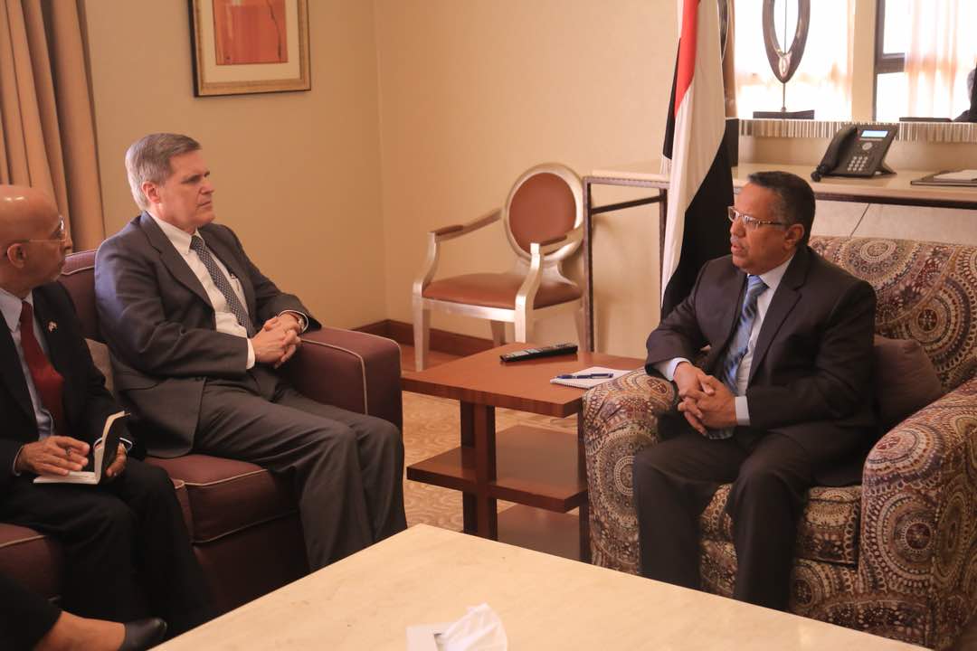 وعبر رئيس الوزراء، عن تقدير الحكومة والشعب اليمني للموقف الامريكي الثابت والمساند للشرعية اليمنية، والالتزام بتقديم الدعم الممكن لانهاء الانقلاب ومساندة تطلعات اليمنيين في بناء يمن اتحادي جديد آمن ومزدهر، يسهم بفاعلية في تحقيق الاستقرار والامن العالمي.